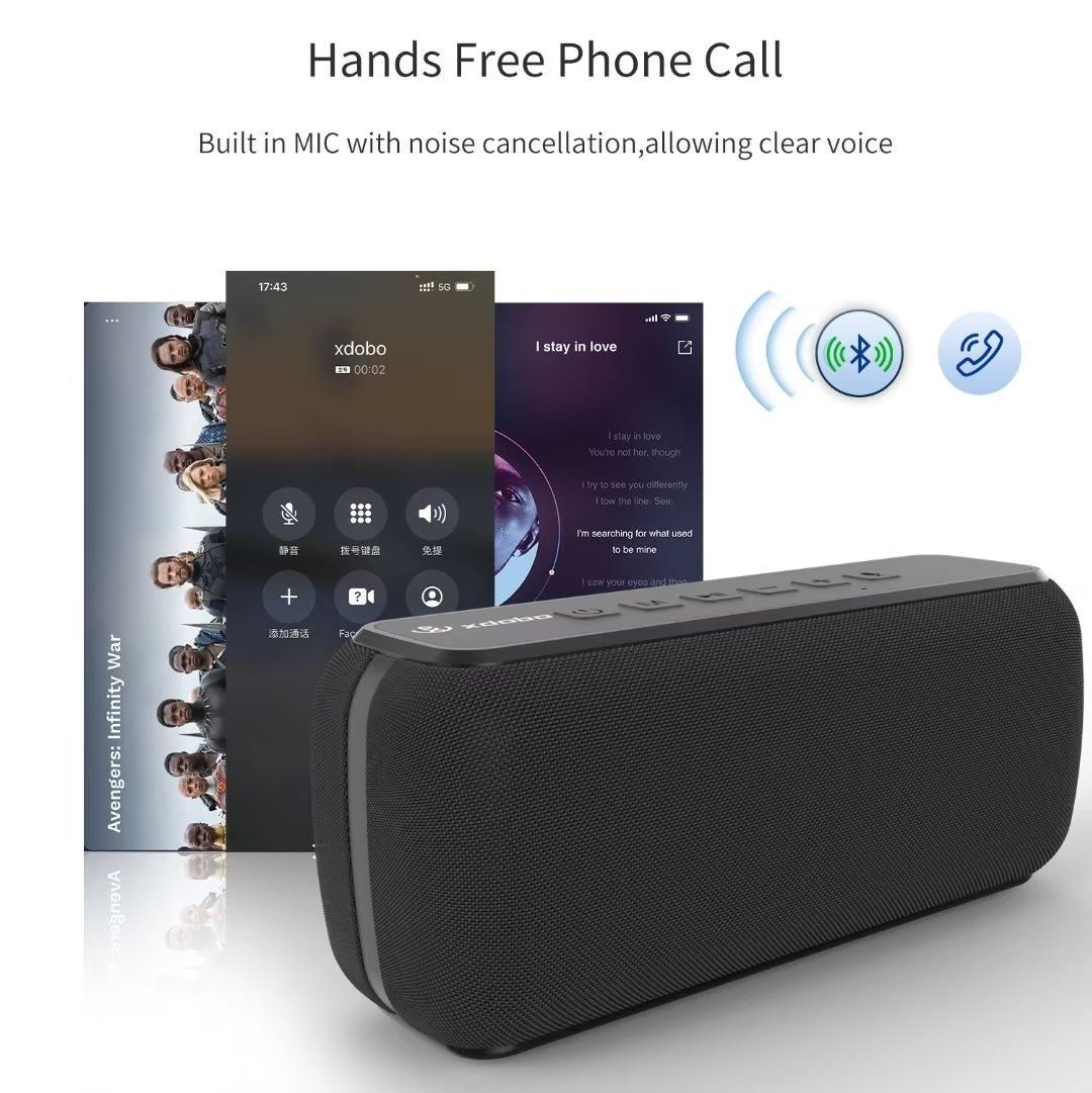 Pairing two XDOBO bluetooth speakers to achieve true wireless stereo Bluetooth playback () for separate left and right channels can achieve a total of 120 watts of powerful true stereo sound. Simply control the main device to synchronously play audio on two devices, equipped with 3D digital surround sound, combined with DSP technology and dual subwoofer stereo, allowing for perfect tone output in any environment in your life.
