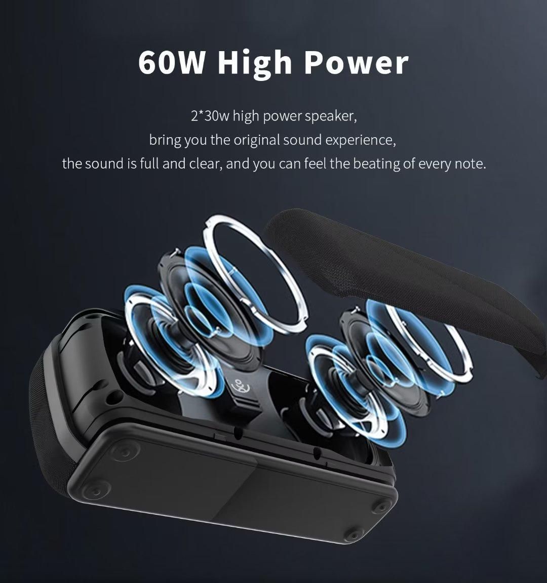 60W high-power subwoofer: portable Bluetooth speaker, 360 degree surround sound, with powerful bass penetration ability.