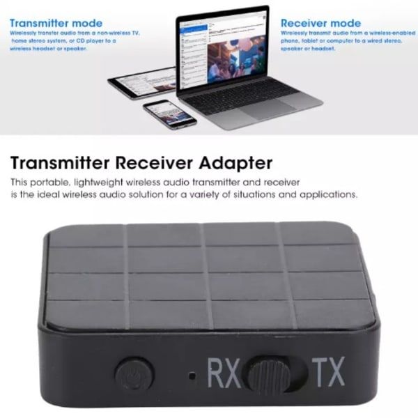 2.Transmitter mode:wirelessly streams audio from your non-Bluetooth TV, home stereo system, or CD player to your Bluetooth headphones or speakers3.Receiver mode: wirelessly streams audio from your Bluetooth-enabled phone, tablet, or computer to your wired stereo, speakers, or headphones