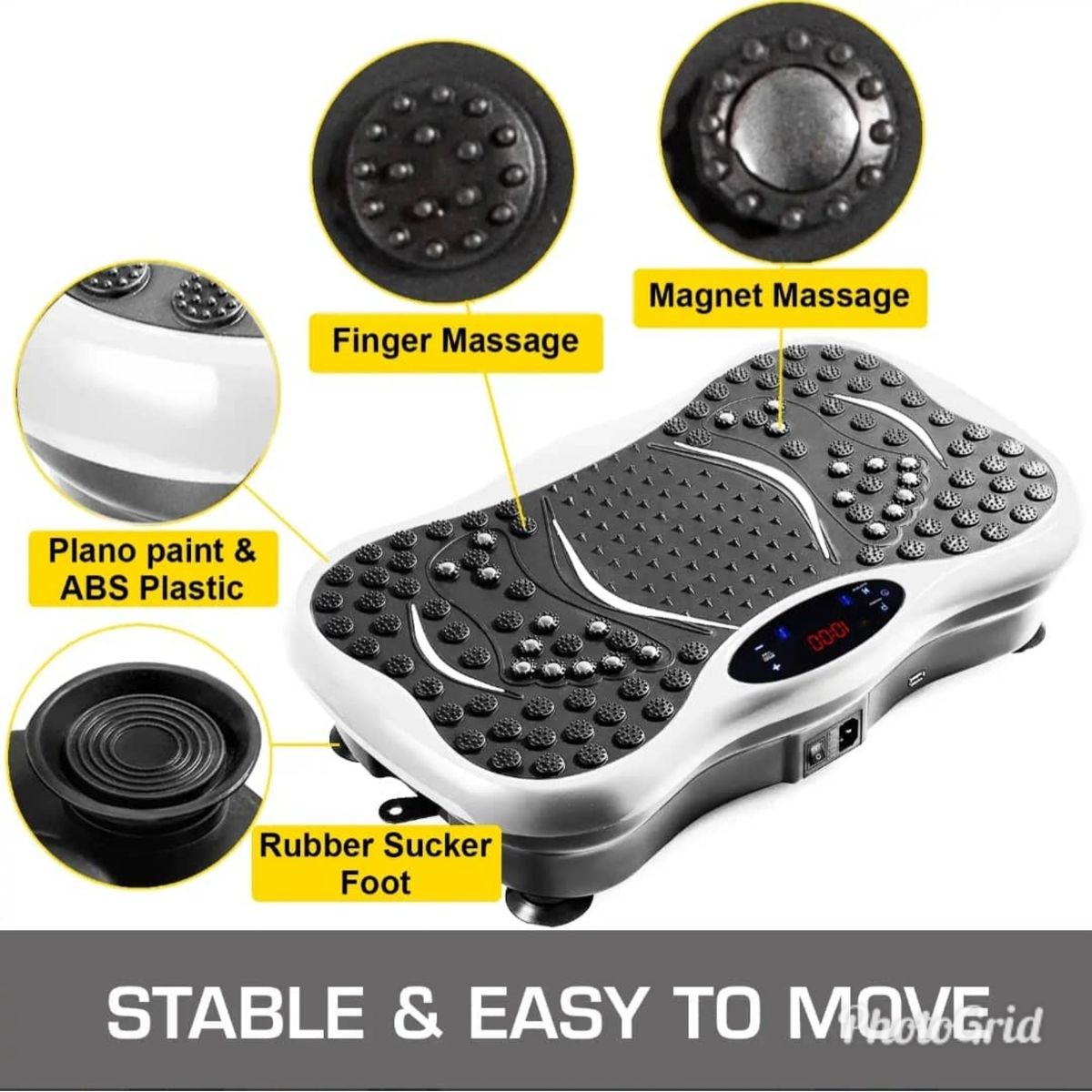It is designed for whole body workout with 180 speed level and 3 training channels. Be ready to reshape your body in arms, hip, legs and abdomen with our music player Whole Body Vibration Plate Platform while watching TV or listening to music at home or office.Large LCD Display