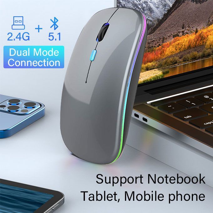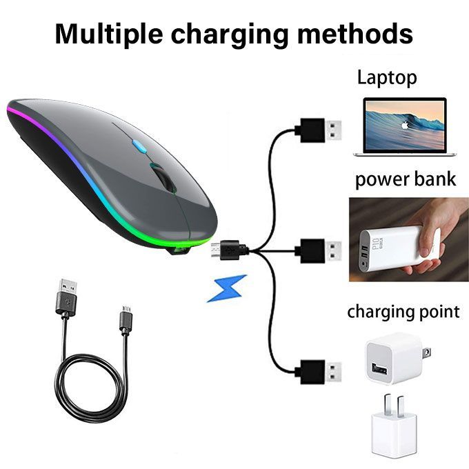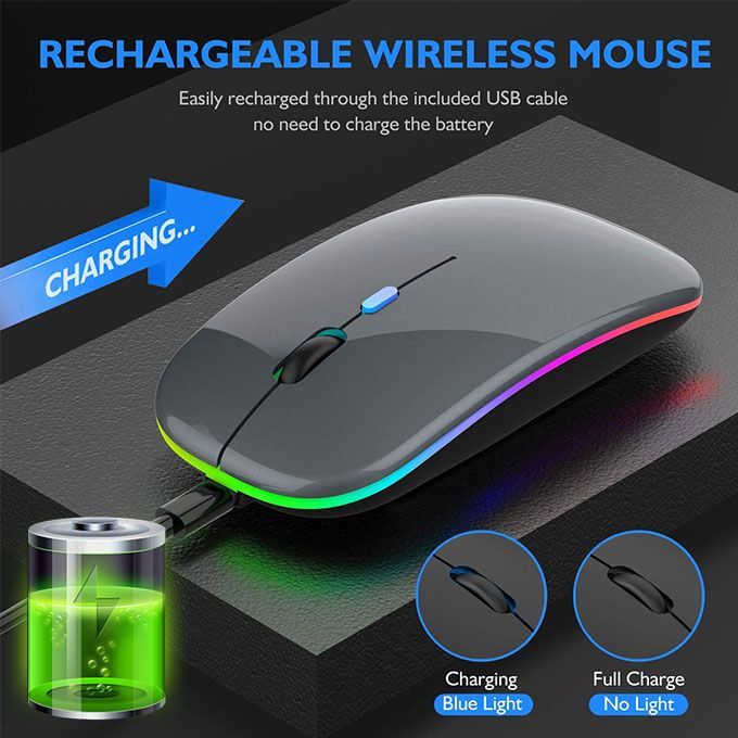 Classic Led Gaming Rechargeable Wireless Mouse- Gray