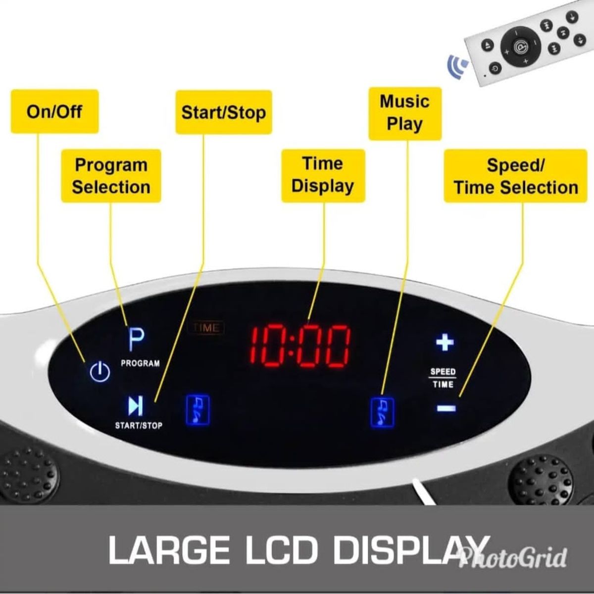 NASHONGYM Ultra thin Vibration Platform Plate Whole Body VibrationAre you still looking for a easier way to workout or lose some weight? Here comes our vibration machine, the most popular equipment among the passive exercise. It is designed for whole body workout with 180 speed level and 3 training channels. Be ready to reshape your body in arms, hip, legs and abdomen with our music player Whole Body Vibration Plate Platform while watching TV or listening to music at home or office.Large LCD DisplayLarge LCD display shows time and speed. wireless control allows you to easily control the machine at the click of a button.Powerful Functions180 Speed Level and 3 Training Channels: Walking & Jogging & Running. Various exercises are combined in one powerful machine.Stable & Easy to MoveABS shell and piano makes it durable and reliable. It is also stable thanks to its rubber sucker feet. Two different pattern can massage your feet during workout.Multiple ProtectionYour safety always comes first. High quality 200W full copper motor has high efficient and works well with silent mode.High CompatibilityThis vibration plate is equipped with high compatibility. It can connect USB and BT, mobile phone, tablet, MP3 player or notebook with Bluetooth.Great EffectWorkout on this platform with the comfort at your home. Listening to music while workout with our USB & BT Player Vibration