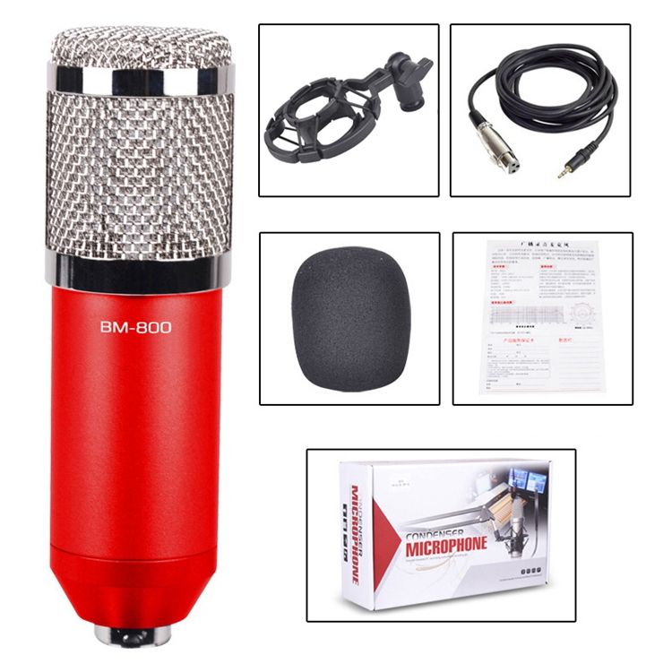 BM-800 3.5mm Studio Recording Wired Condenser Sound Microphone with Shock Mount, Compatible with PC / for Live Broadcast Show, KTV, etc.(Red)