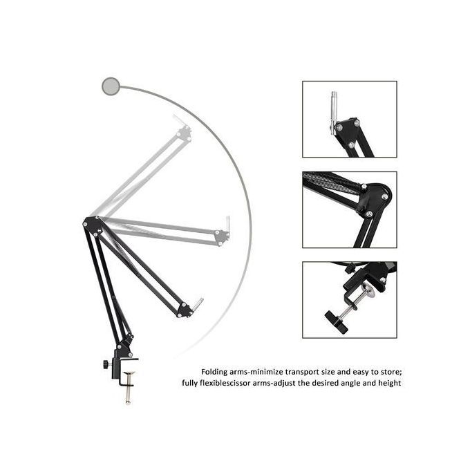 Ideal pour le studio de radio, le studio de son vocal, les scenes, les stations de television, etc. Support de microphone de bureau et filtre Boom Microphone antichoc et support antichoc