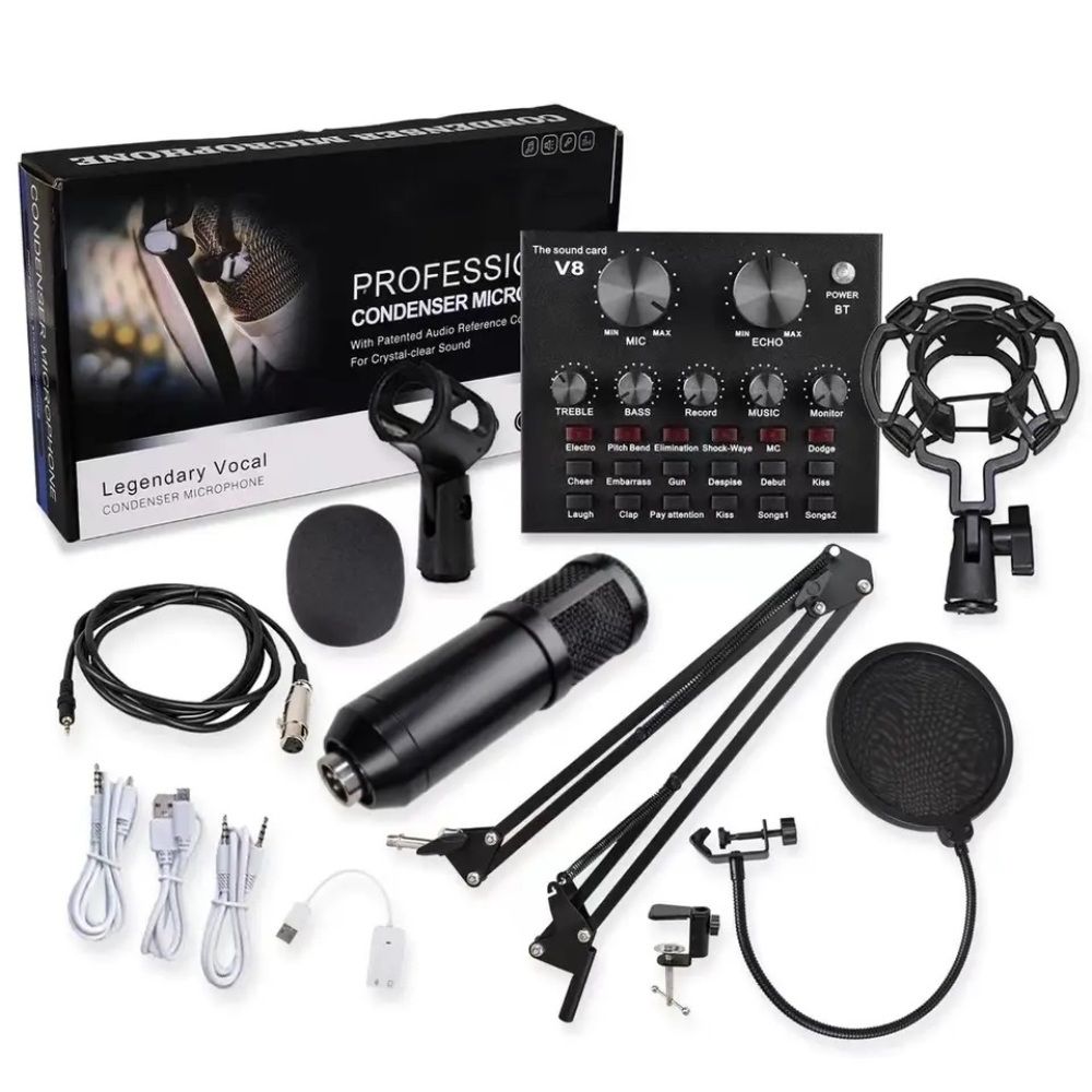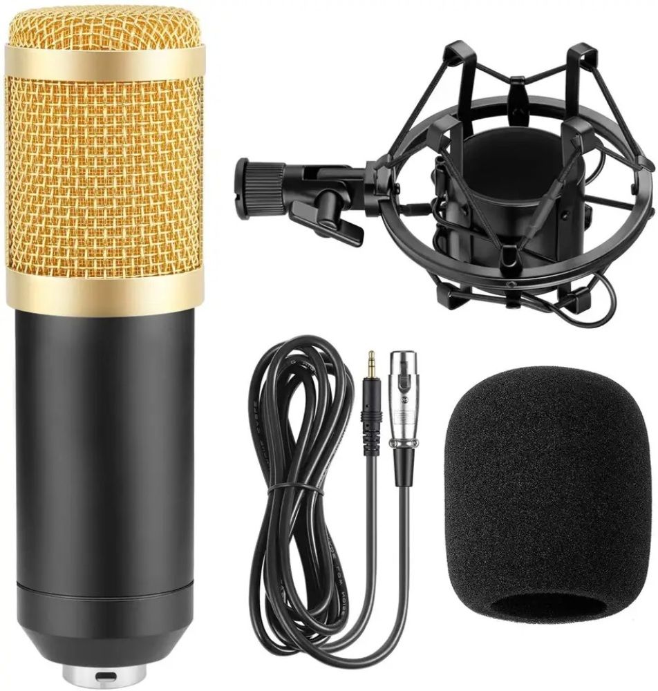 1 x BM - 800 Condenser Studio Sound Recording Microphone with Shock Mount1 x Shock Mount 1 x Anti-wind Foam Cap 1 x 3.5mm Audio Cable and the Mic Stand and 1 x Pop Filter,1X Power Supply Pack.