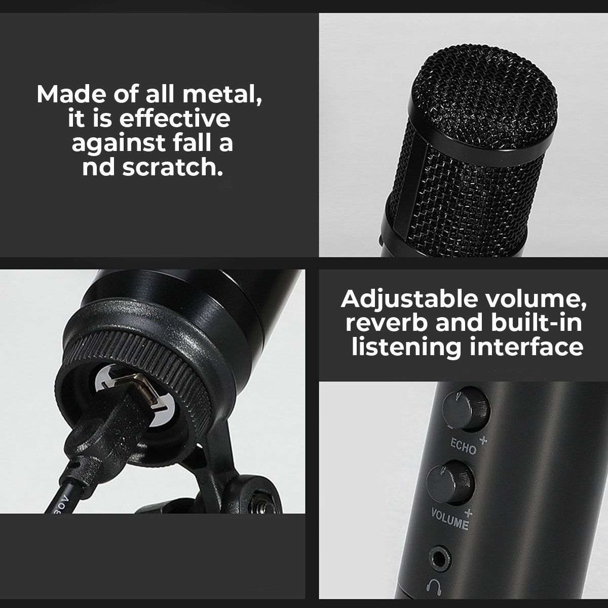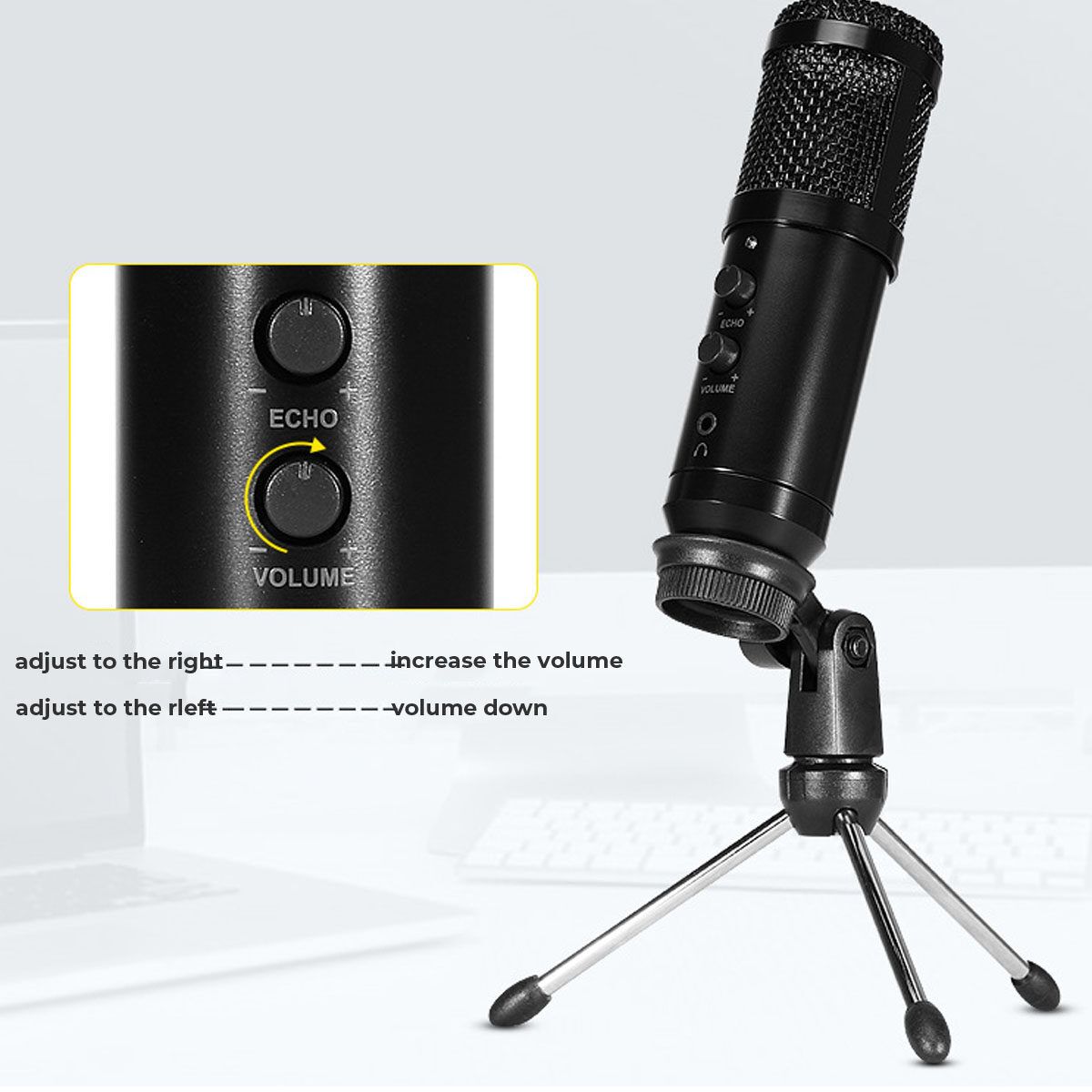 - Tripod Stand: 180° Rotable practical desktop microphone.