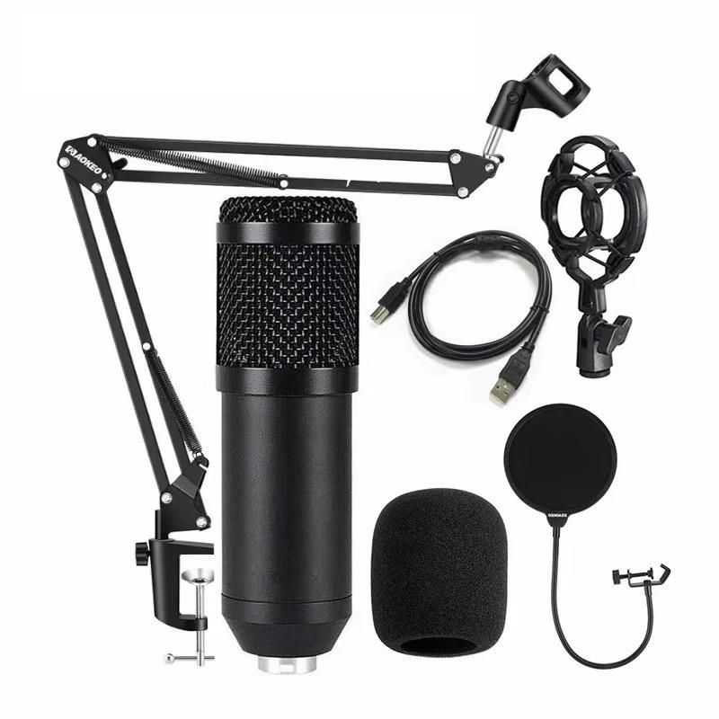 1 x BM - 800 Condenser Studio Sound Recording Microphone with Shock Mount, 1 x Shock Mount, 1 x Anti-wind Foam Cap, 1 x USB cable connection and the Mic Stand and 1 x Pop Filter.