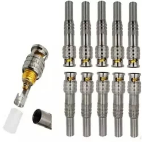 The BNC connector is used to connect the CCTV camera to the Digital Video Recorder (DVR) via RG59 cable. It is also known as screw-on BNC connector, as it has a screw terminal where the copper core of the RG59 cable is attached to.