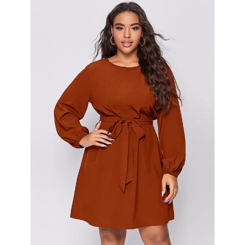 Buy Boat Neck & Bishop Sleeve Belted Dress-Orange in Nigeria