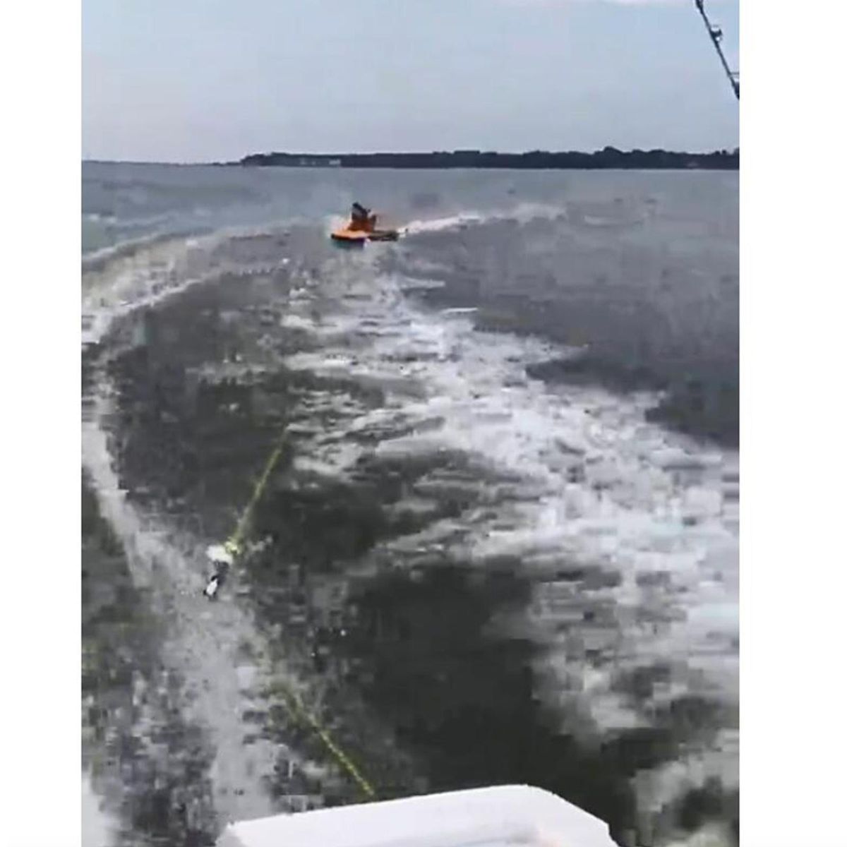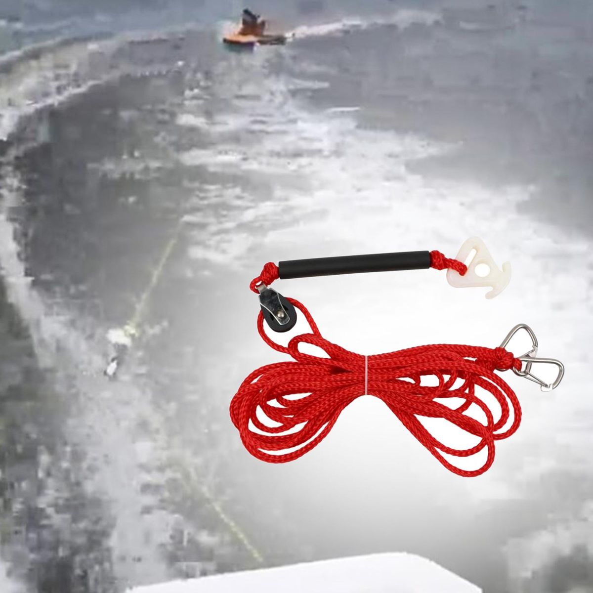 The tow harness creates behind of the boat, outboard or stern drive.