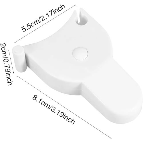 Portable body tape measure, the outside is an inch display and the inside is a centimeter display.Surround your body, insert the column into the cylindrical slot and press the center button.The measuring tool is easy to use and is ideal for measuring the chest, waist and hips.Dimensions: 8.5cm x 5.3cm x 2cm / 3.35" x 2.09" x 0.79", length: 150cm / 59.06" (approximately)If you have any questions, feel free to contact us and we can give you a satisfactory solution