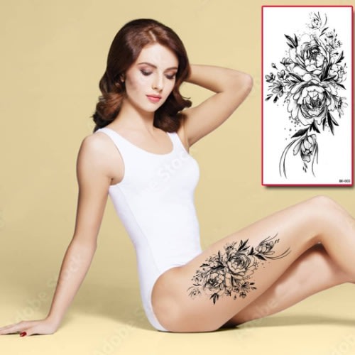 Mixed Pattern Temporary Tattoos: Single style kind of pattern design fake tattoos for women, including black flowers,roses, peonies, geometric patterns, and other fashion elements.