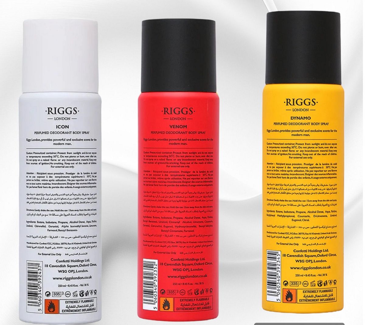 3pcs Riggs London Body Spray 250ml (Mixed)
