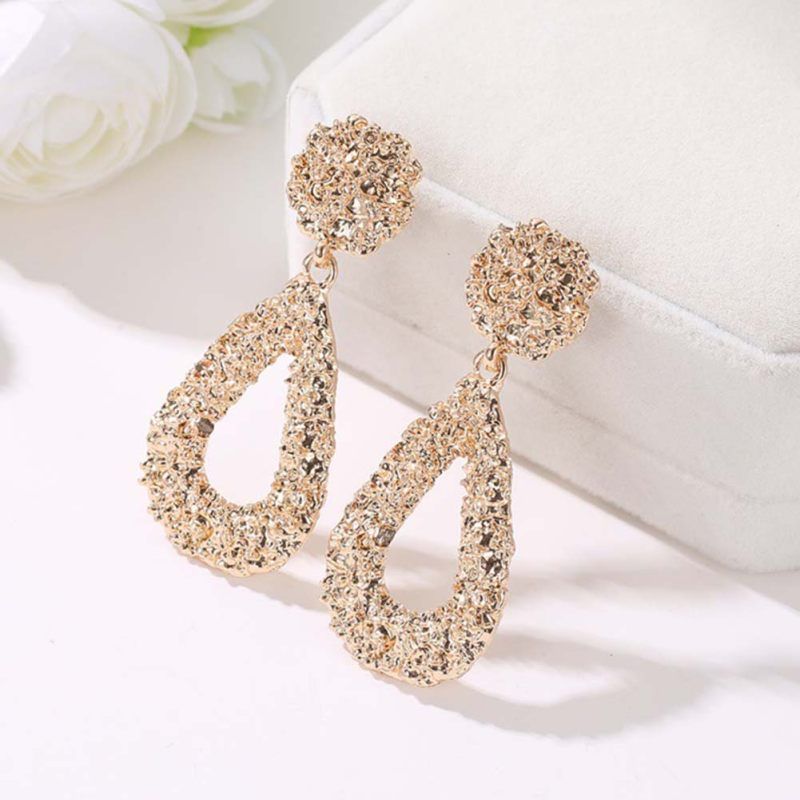 Features: Emboss Design, Hollow Teardrop Dangle, Party Jewelry