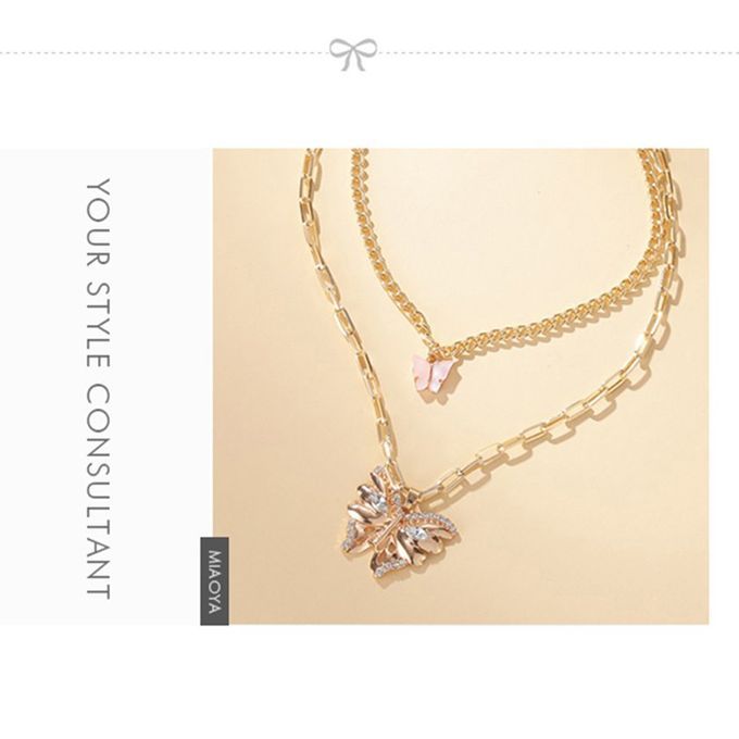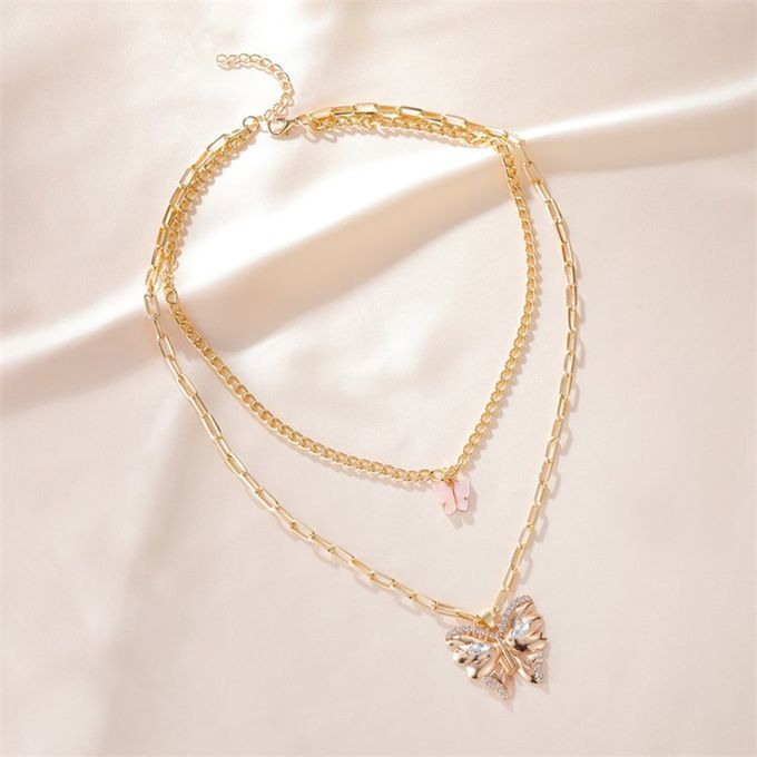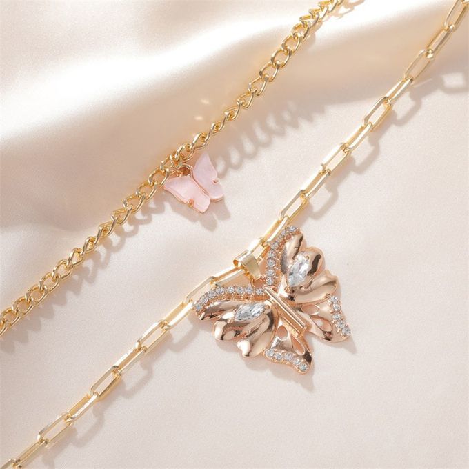 Features: 1.Made of lightweight high-qu ty alloy materials, light weight and good omfort 2.Put it on, no matter what lothes you wear, it will mat h the lothes perfe tly 3.High-qu ty anti-rust design, even when immersed in sweat 4.Designed with two erflies in size, ple and stylish, highlighting unique harm