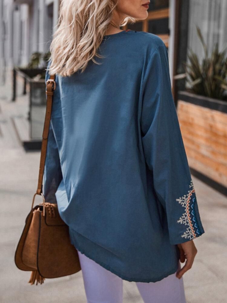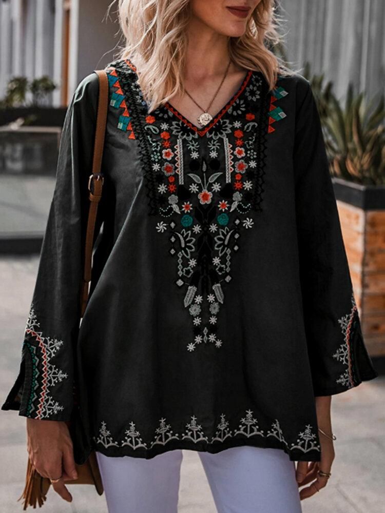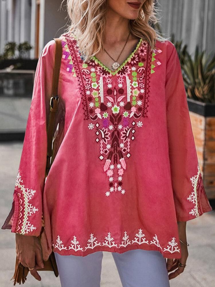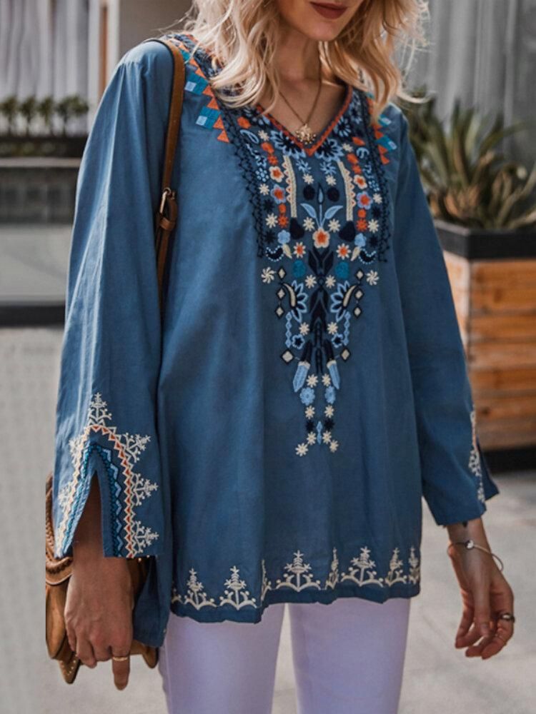 Buy Bohemian Floral Print V-neck Long Sleeve Holiday Ethnic Blouse For Women in Nigeria