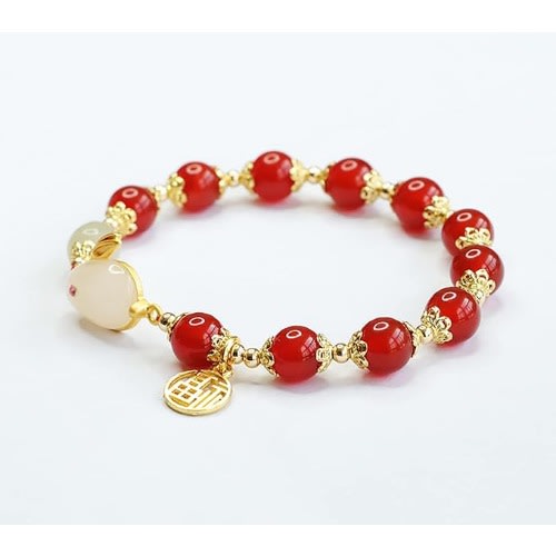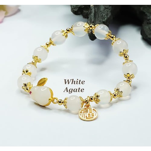Elegant Agate Rabbit Bracelet Feng Shui Amulet for Women Spiritual Healing, Lucky Charms for 2023-Spiritual Meaning Of Rabbit The bringer of good luck & ndash; rabbits bring good luck, fortune and abundance. Therefore, their appearance in your life might be a sign that good luck and fortune are coming your way.Meaning & Energy: Agate is a gemstone that has the meaning and properties of regaining a sense of youth. It evokes the "power of idea" and "curiosity" you felt when you were a boy or girl. Please try the power of Red Agate when you are too conservative. Agate includes yin and yang energy, providing a balance between the positive and negative. In fact, one could collect only agate stone varieties and accrue all the crystals one would need for healing the body and mind.In Chinese folklore, the rabbit often is portrayed as a companion of the Moon goddess Chang'e, constantly pounding the elixir of life for her and some show the making of cakes or rice cakes. The Moon Rabbit or Moon Hare is a mythical figure in East Asian and indigenous American folklore who lives on the Moon, based on pareidolia interpretations that identify the dark markings on the near side of the Moon as a rabbit or hare.Suitable Wrist Circumference Materials: hand-selected agate, white jade, Hetian nephrite jade, etc. The stones are selected by artsians with more than seven years experience in jewelry making, rinsed and polished by hands. Our jewelry artworks are directly from our studio, using many royal jewelry making techniques. Affordable work of art, yet highly collectible.Meditation Oranment that Works: Our metaphysical products are cleansed and blessed by eminent monks, the benediction comes after you placing the order, to ensure the power of the ornament is stronger. Great Feng Shui service, does the magic! NOTE: there might be ice cracks, trails of minerals and organic matters, or flocs, they are the characteristics of natural gemstone, please keep in mind.
