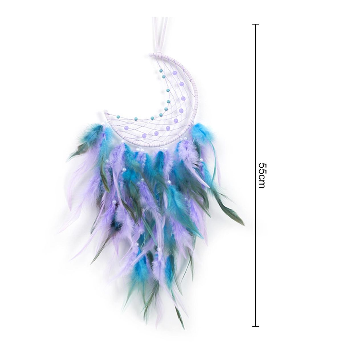 But our moon dream catcher is more than just a decorative piece. it holds beautiful legends and magical meanings that make it truly special. according to belief, as nightmares pass through the holes and out the windows, the net captures and traps beautiful dreams, which then slide down the feathers to bless sleepers with peaceful nights. this makes our dream catcher a symbol of banishing nightmares, praying for peace, and bringing good luck. let it bring you peaceful sleep and help make your dreams come true.