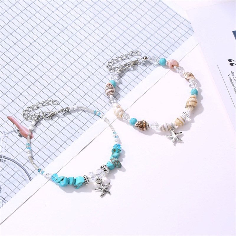Shell& starfish design women ankle bracelet, lovely and charming.