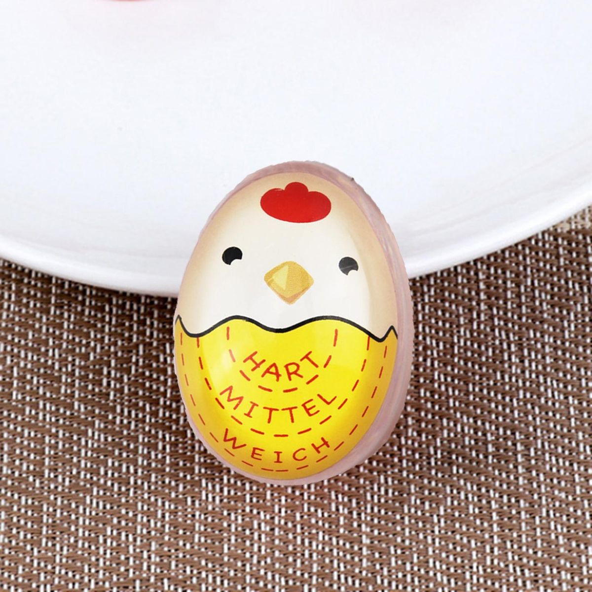 As the eggheats up, the red face changes color, indicating soft, medium, hard and stages in between, absorbing heat exactly as an egg does.
