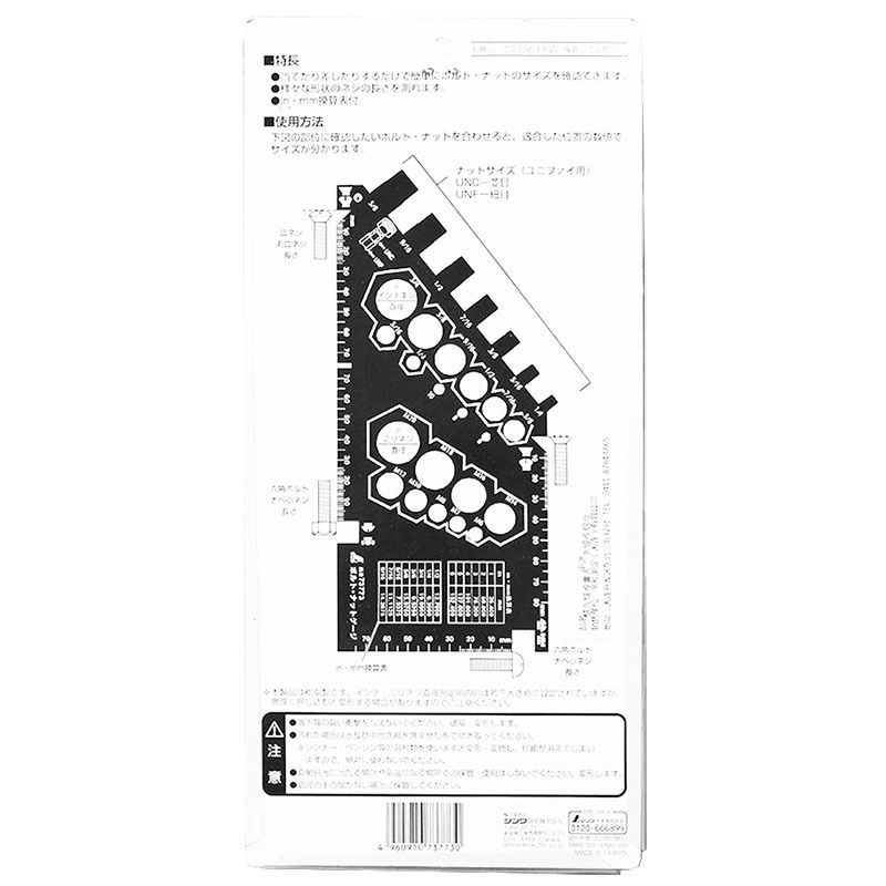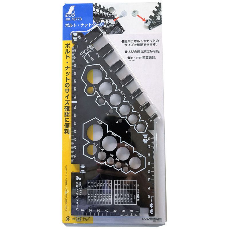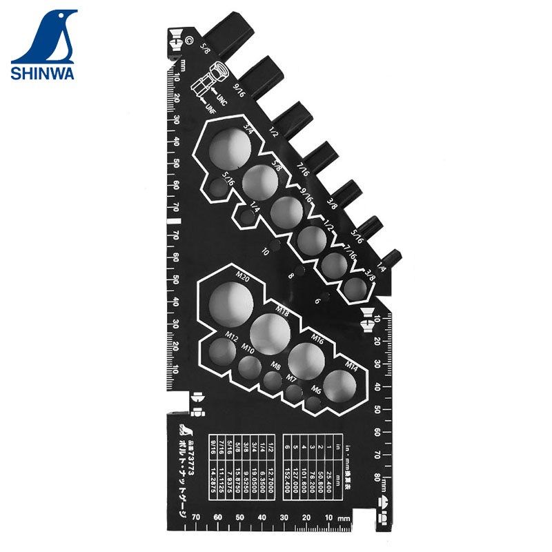 Features Easily measure size of nut bolt just by putting on the gauge Measures different shapes of screws Inch/mm converting chart SHINWA Japanese brand, quality aurance. Use For measuring size of bolt and nut