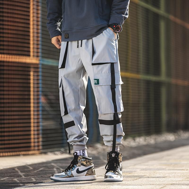 1X Pantalones bombachos con cintas para hombre ropa de calle con multiples bolsillos de chandal de alta calidad nueva moda 2020