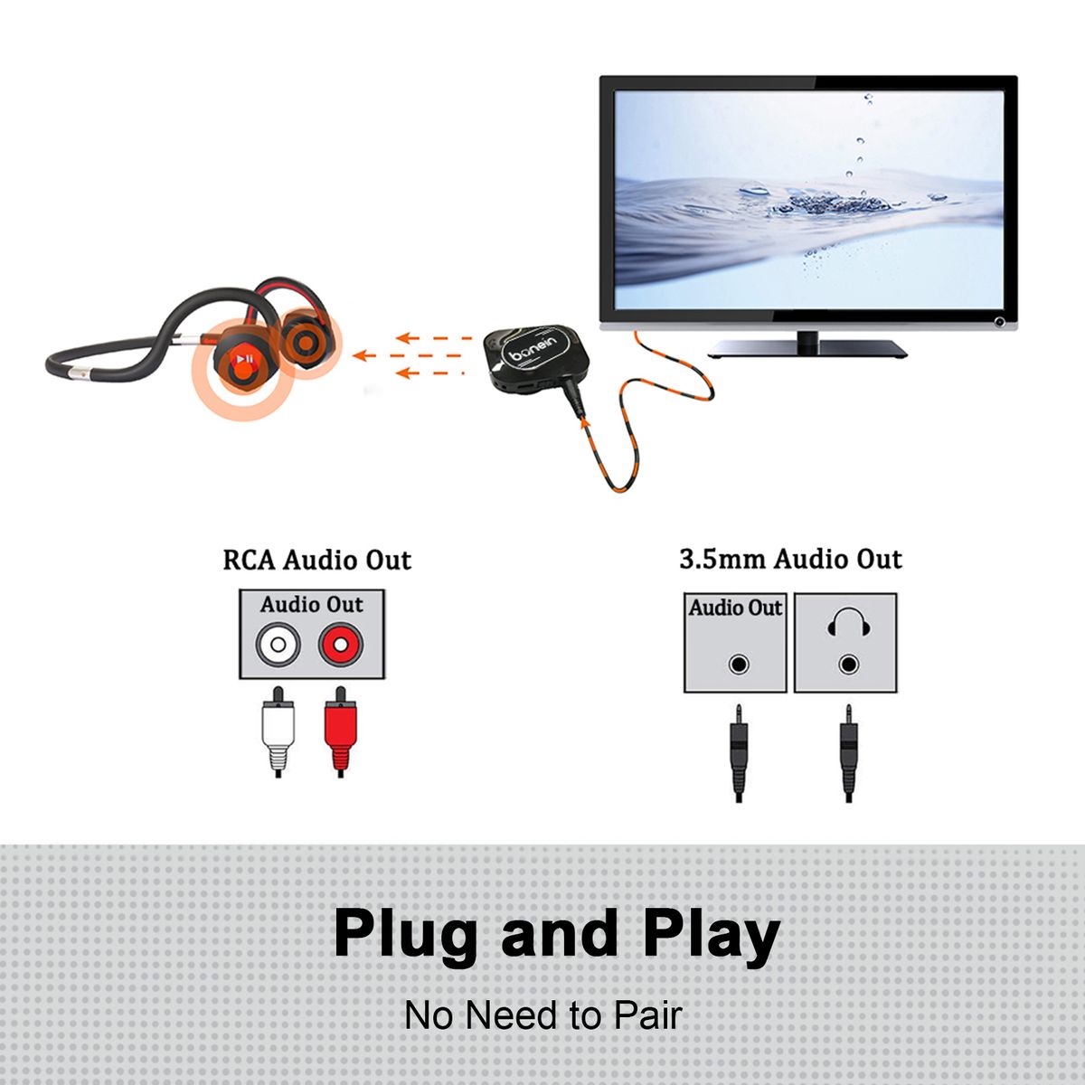 Multiple usage: BN702T can be used when you are working, studying, sporting,or watching TV. And it also can work independently as a BT earphone to connect to mobile phone, or other devices by BT.