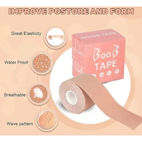 Wear Whatever Clothes You Want - Have you ever had a cute dress but couldn & rsquo;t find breast covers that worked? Go braless and feel confident with Booby Tape. This boob lift tape provides enough support for your bust, so you can move freely in any outfit.Push Up Tape for All Sizes - This isn & rsquo;t just a breast lift tape for large breasts. Our reliable, high-quality boobs tape roll fits all bust shapes and sizes with a stretch capability of up to 170%. Cut the tape to suit your unique figure and adjust as needed.Secure Adhesion yet Painless to Remove - Using a bra lift tape frees your boobies from tight straps and wires. Aside from covering your nipples and holding your breasts in place, this sticky boob tape provides unparalleled comfort even in extreme movement.Waterproof and Moisture-Resistant - Our latex-free breast tape lift is made of cotton, spandex, adhesive, and acrylic that won & rsquo;t irritate your skin. Use your breast adhesive tape underneath swimsuits and plunging neckline outfits without any discomfort.