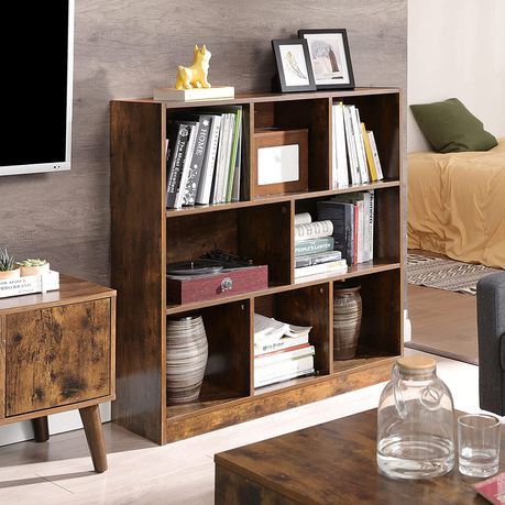 Space: Don't sacrifice style when adding storage to your home; this bookcase in a rustic brown finish offers the right mix of style and efficiency to keep your book collection.