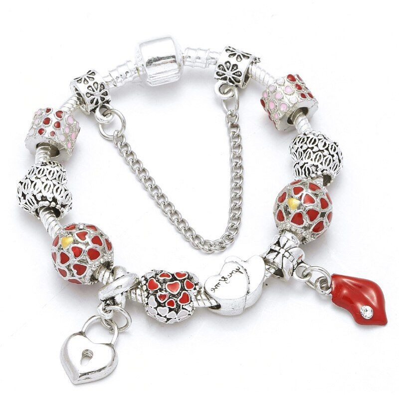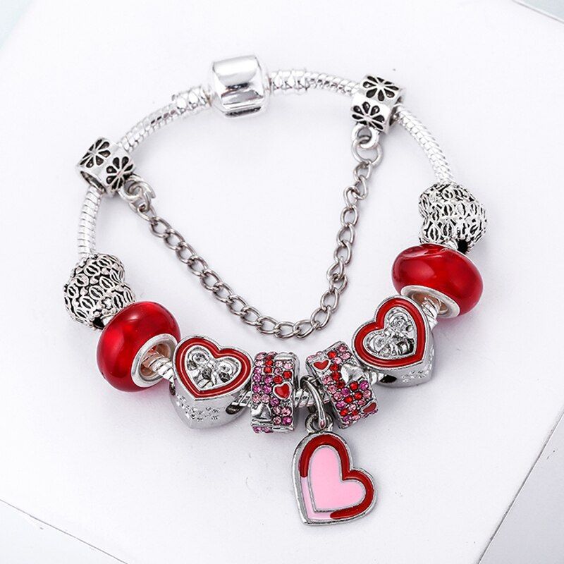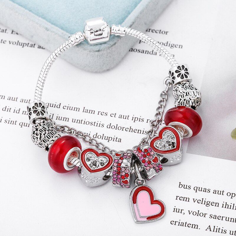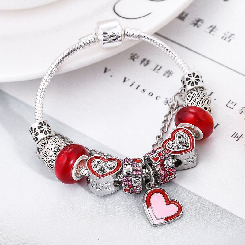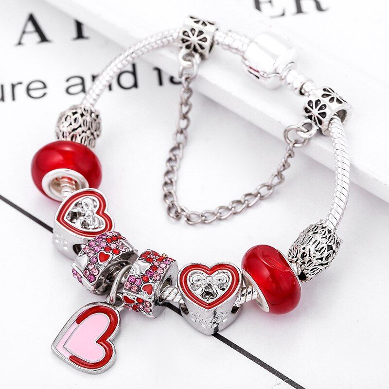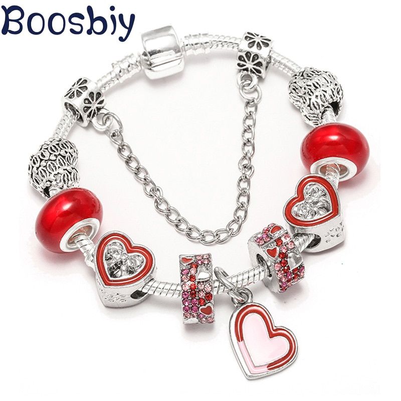 1 * Boosbiy Silver Plated Charm Bracelet With Heart Beads For