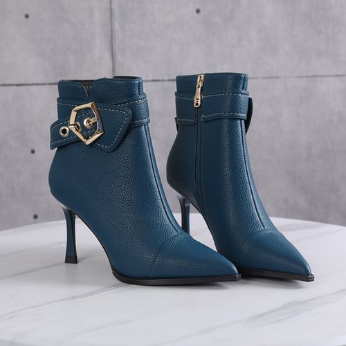 - Boots female new temperament pointed side zipper thin strap buckle short female boots