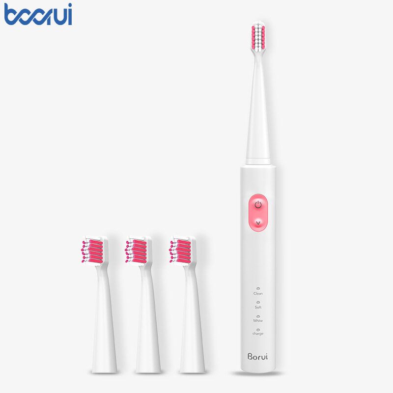 Buy Borui BR-Z1 USB Wireless Ultrasonic Electric Toothbrush Oral Hygiene Rechargeable Sonic Automatic Tooth Brush With 4 Replacement Brush Heads Pink (pink) in Nigeria