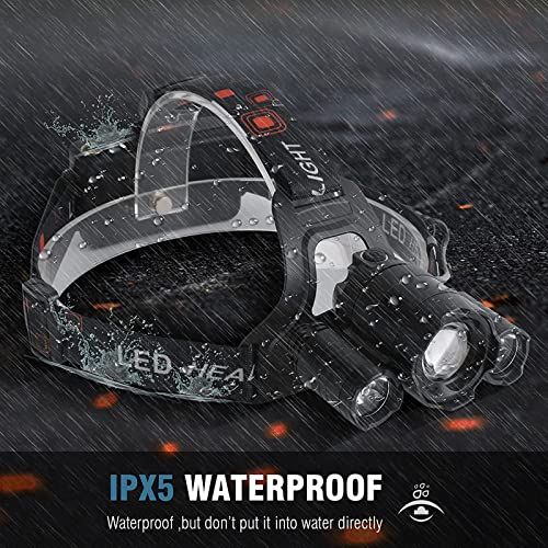 - WaterproofDurable and Adjustable Headlight IPX5 waterproof ,it an be used under terrible weather. Made of aluminum alloy with hard surfae treatment. The lamp and headband an be separated, failitating multifuntional use. suh as a bike light and amping light and portable light .