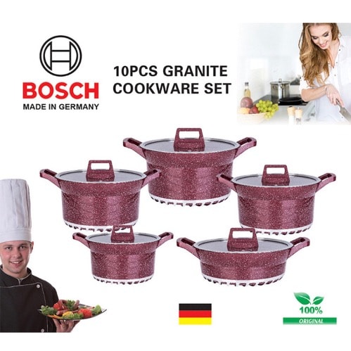 Buy Bosch Germany Granite Cookware Set - Wine Colour - 10pcs in Nigeria