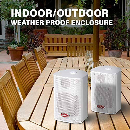 Details: Blast your favorite musi on the open water with the Boss Audio Indoor/Outdoor 3-Way Speakers. These 4 in. white speakers operate at a ombined maximum of 200 watts and are ideal for marine vessel appliations. These speakers inorporate high-teh, state-of-the-art waterproofing materials plus speial UV oatings for plasti surfaes, oated iruit boards and onnetions.