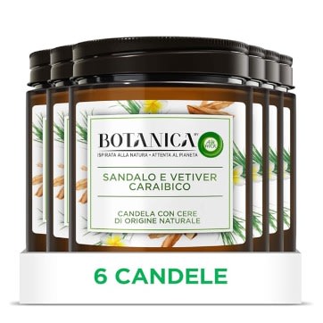 About this itemPACKAGING: The package contains 1 scented candle with waxes of natural origin Airwick Botanica, Sandal Fragrance and Caribbean VetiverTHE CANDLE: Botanica scented candles are made with waxes of natural origin, paraffin wax with no metals and with natural ingredients obtained responsiblyTHE FRAGRANCE: Delight your senses with the authentic freshness of Caribbean Vetiver and the enveloping notes of Sandal; Essential Oils come from Vetiver, collected responsibly on Haiti Island to help local farmers, supporting their communitiesFRAGRANCE DURATION: Experience its pleasant fragrance throughout its duration; air freshener lasts up to 40 hoursATTENTION TO THE ENVIRONMENT: Glass container and lid are recyclable