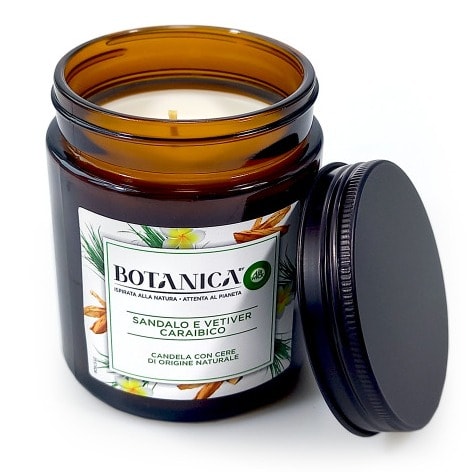 Candle with Wax of Natural Origin - SANDAL AND VETIVER CARAIBICOAll Botanica fragrances are made with refined natural ingredients, carefully selected to respect our planet. No dyes, no animal testing on the final product, no Phtalates, but responsible selected natural ingredients.