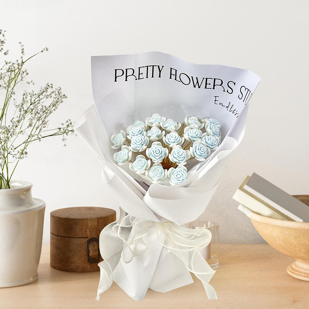 bouquet making material;DIY Rose Bouquets Wedding Artificial Flowers;Flower Bouquet Accessories Supplies Paper Wrap;Bouquet Making Material Handmade Fake Flower;Table Centerpiece Party Home Living Room Ornament;Valentine's Day Anniversary Birthday Wife Gift