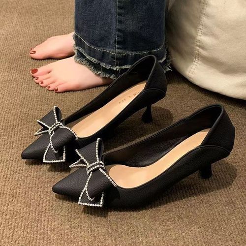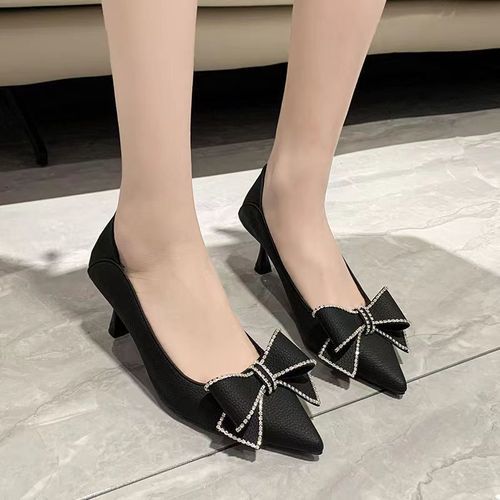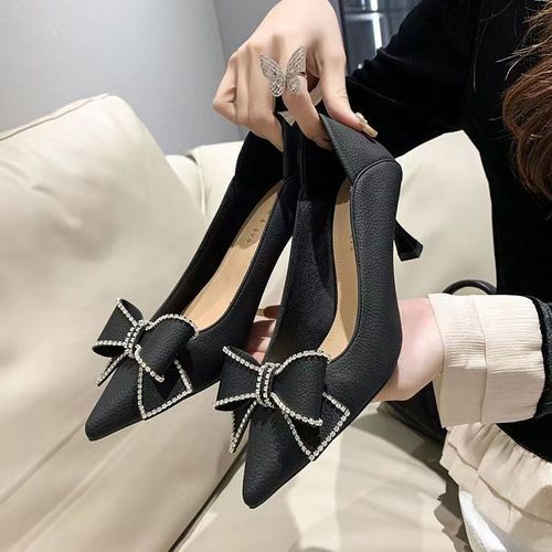 Buy Bowknot Leather Stiletto High Heels -Black in Nigeria