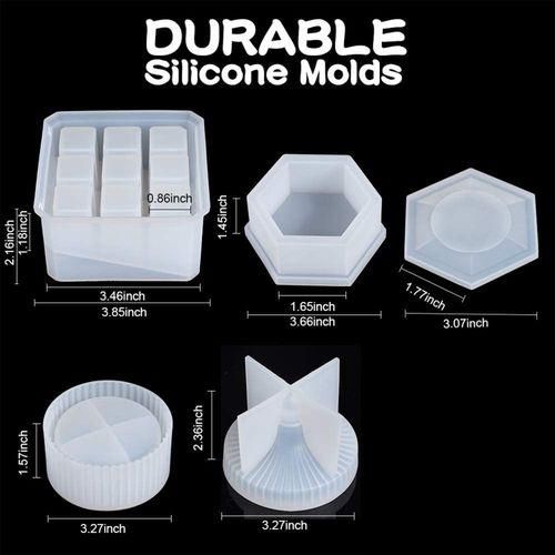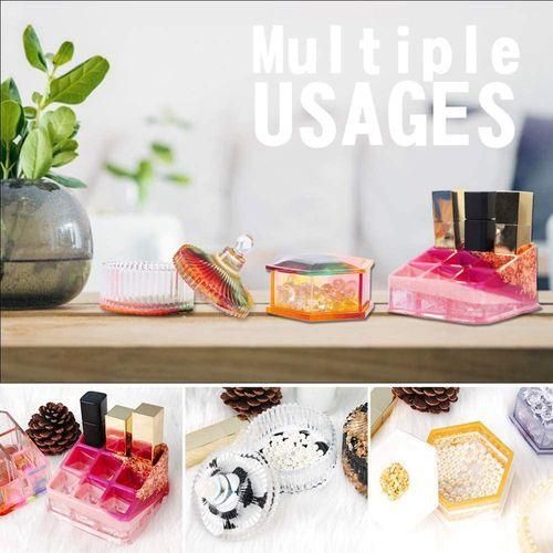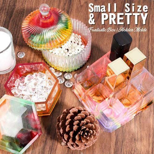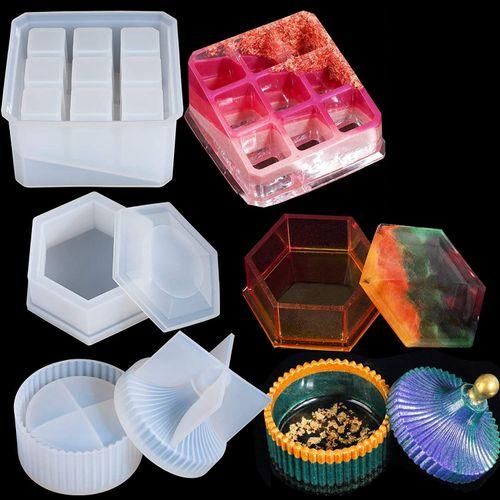 The following is the detailed introduction about our products: Wonderful box/bracket mold: 3 small container molds: round striped box mold, hexagonal box mold, nine-slot bracket mold, suitable for making jewelry boxes, lipstick holders/storage boxes, jewelry boxes, ring boxes, candlesticks, ashtrays Wait. Cute and versatile, a must-have for craft tables.