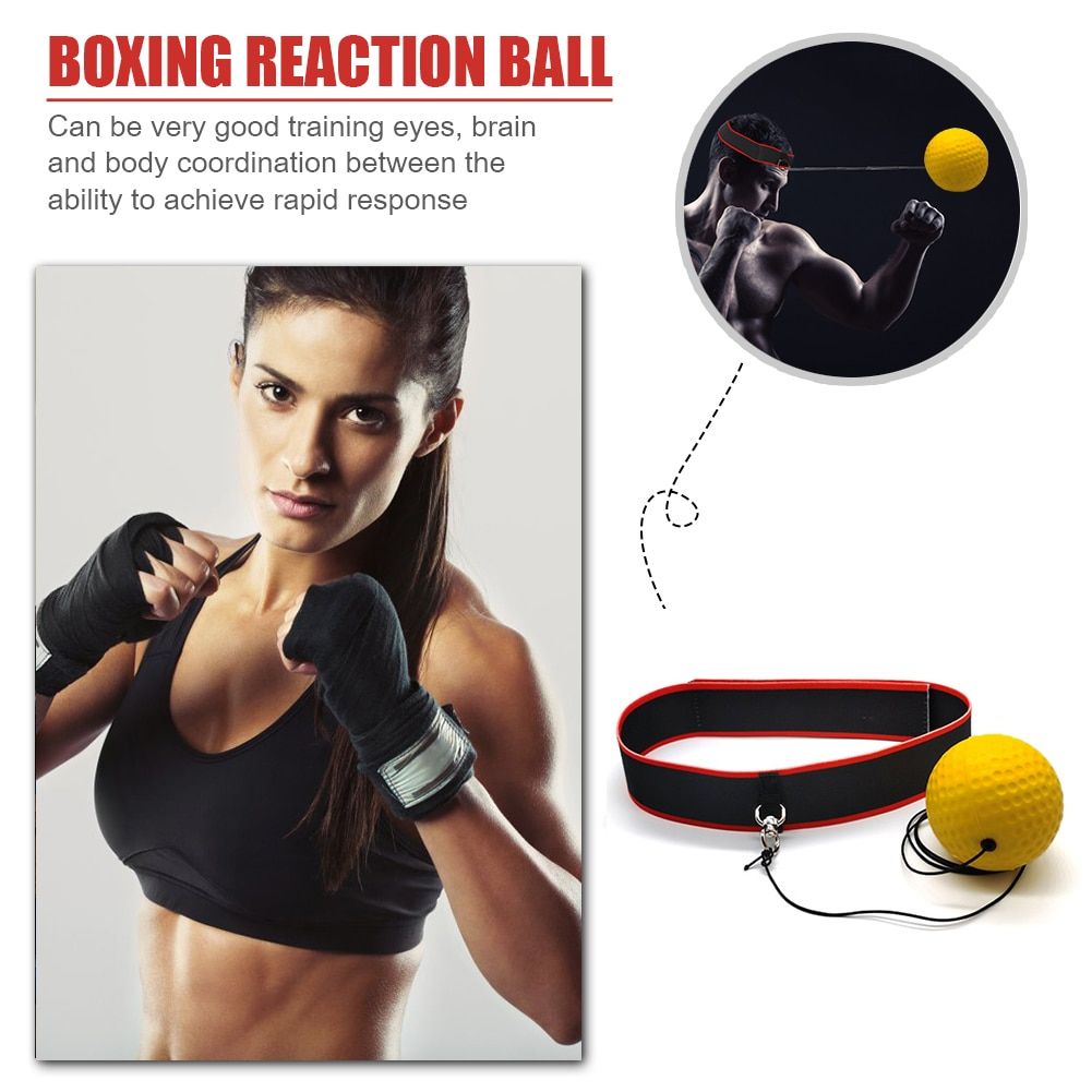 Boxing Reflex Ball Set with Headband Elastic Rope Foam Punch Speed Balls Boxing Reaction Agility Training Home Fitne Exercise Equipment Feature: 1. Improve reaction and speed: perfect training equipment, 360-degree fast reflection moving ball to improve your attention, coordination and speed of hands and eyes 2. Lightweight and portable. 3. Suitable for men or women, adolescents or children, including the elderly. Everyone can play this boxing ball. It is suitable for boxing other combat sports, but also can be used to strengthen coordination and reflection. 4. Elastic headband, sticker, 360 degree rotating 8-on. Specification: Material: envmental protection PU foam Diameter 6.3cm/2.48in Headband: Weight: about 35g Total length: 67cm,/26.37in Width is 3.8cm/1.49in Boxing ball: PU red ball 25g, 1.2mm () elastic rope PU black ball 25g, 1mm (black) elastic rope PU yellow ball 25g, 1mm (black) elastic rope PU green ball 40g, 1.5mm (black) elastic rope Velvet bag: universal Thread threader: general purpose Instructions: English instructions Note: Due to the different monitor and light effect, the actual color of the item might be slightly different from the color showed on the pictures. Thank you! Please allow 1-3cm measuring deviation due to manual measurement. 1 x Elastic Headband 1 x PU Red Ball 20g 1 x Black PU Ball 20g 1 x Yellow PU Ball 20g 1 x Green PU Ball 40g 4 x Spare Ropes 1 x Threading Device 1 x Storage Bag 1 x Manual