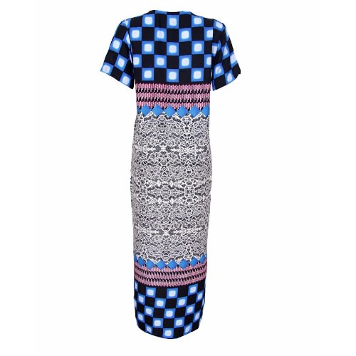 Buy Boxter Square Print Maxi Dress with Neck Detail - Blue in Nigeria
