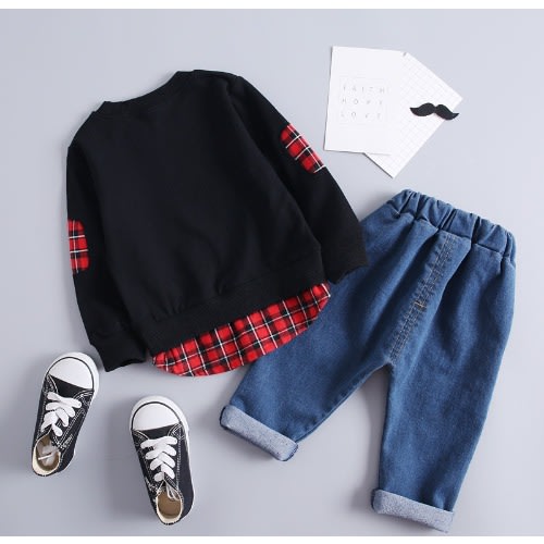 Buy Boy Cartoon Design Shirt With Jeans - Black Plaid in Nigeria