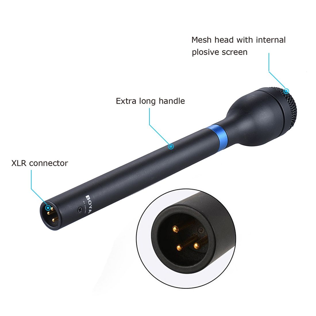 About The ProductThe BOYA BY-HM100 is a dynamic handheld microphone with omini-directional 360 degree pickup pattern. With Isolated capsule and a high qualaity microphone head, it can well reuduce handling noise and provide a clear live sound. There's no need for any extra battery or phantom power which ensures convenient use ideal for ENG & Interviews.