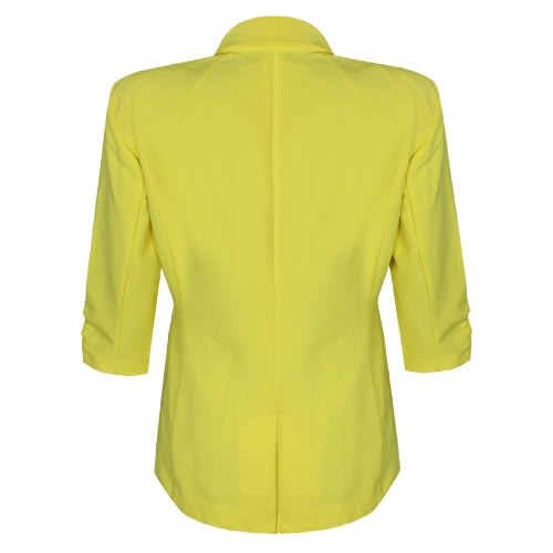 Kilky one button single breast long sleeve jacket. Modern and sophisticated, long-sleeve jacket features one button, two front pockets and cut out lapel collar. Wear it to the office with a pencil skirt and a camisole, or go for an off-duty look with a vintage tee