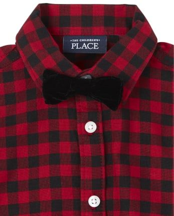 Part of our babyPLACE collection1 long sleeve bodysuit made of 100% cotton poplinClassically styled with a pointed collar and buttoned frontAllover buffalo plaidElasticized leg openingsSnap closures at bottom for easy changing1 pair of chino pants made of 100% cotton twillSnap closure with no zip flyElasticized back waistFaux front and back pocketsButtons at front attach to suspendersElasticized striped suspenders with button-and-loop closureRemovable coordinating bow tie