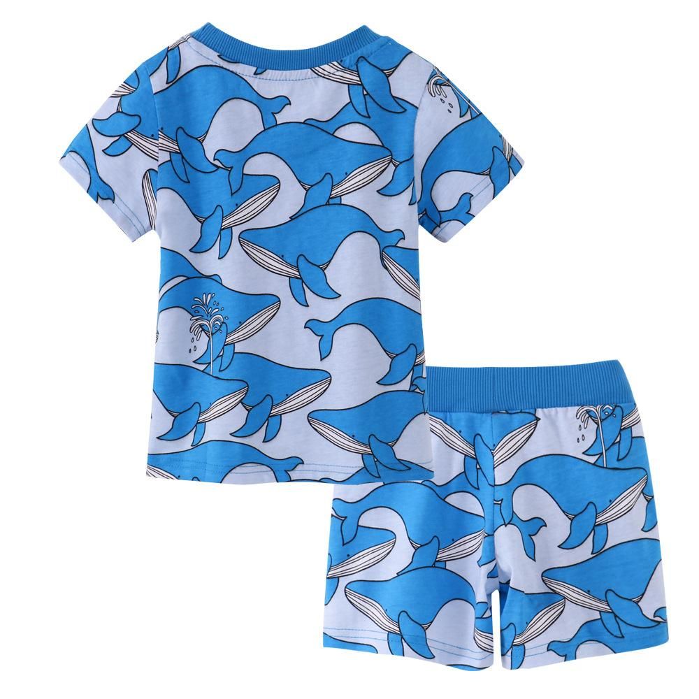 Buy Boys' Cartoon Half Sleeve Children's Suit Short Sleeve Shorts Two-Piece Cotton Texture Pri in Nigeria