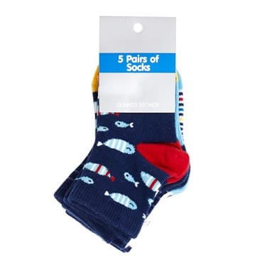 Boyish contrasting colors make these socks so versatile and a great value too. Pack includes 7 pair of different graphics and colour socks. Soft cotton blend terry keeps little feet warm. No skid soles. Machine washable.Note: graphics on the socks may vary.