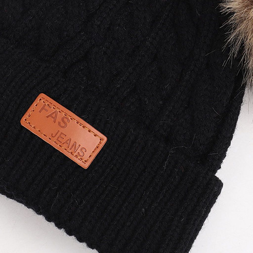 Boys Girls Pom Poms Hat;Thick Warm Winter;Cotton Knitted Beanies