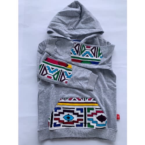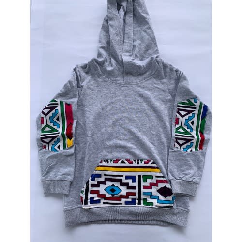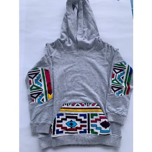 Buy Boys Hoodie With Kente Patches - Grey in Nigeria